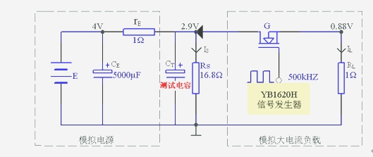 由E、CE、rE組成模擬電源,電源電壓E=4 V,電源內(nèi)阻rE=1Ω;CT為去耦(測(cè)試)電容;