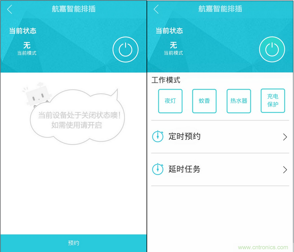 按一下開關(guān)圖標(biāo),三個插座模塊將會供電,有四種模式可以選擇,還可以制定計(jì)劃。