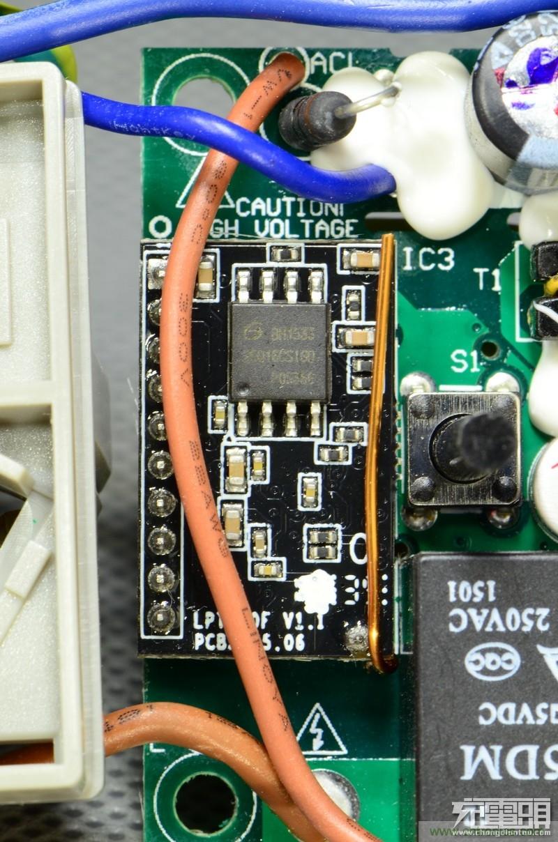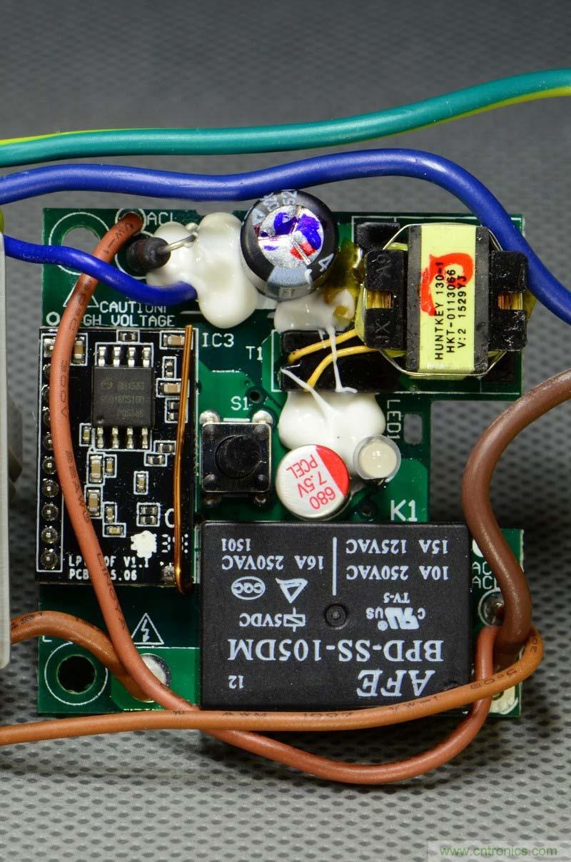右側(cè)Wi-Fi模塊和低壓繼電器供電電路板特寫。