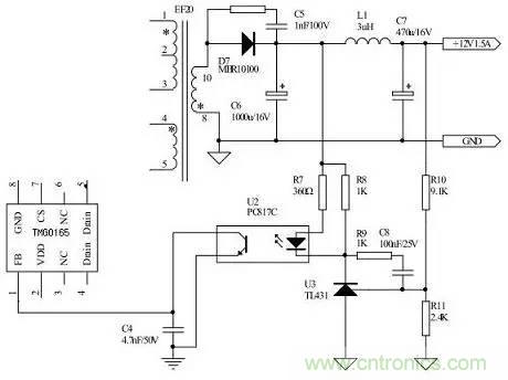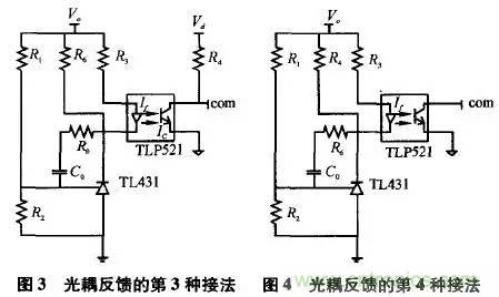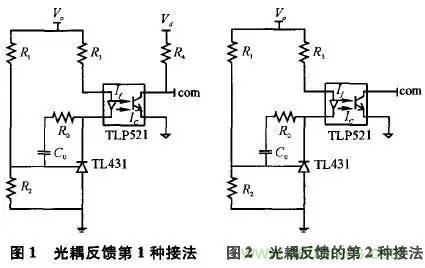 本研究將詳細(xì)分析光耦工作原理,并針對光耦反饋的幾種典型接法加以對比研究。1、常見的幾種連接方式及其工作原理常用于反饋的光耦型號有TLP521、PC817等。這里以TLP521為例,介紹這類光耦的特性。TLP521的原邊相當(dāng)于一個發(fā)光二極管,原邊電流If越大,光強(qiáng)越強(qiáng),副邊三極管的電流Ic越大。副邊三極管電流Ic與原邊二極管電流If的比值稱為光耦的電流放大系數(shù),該系數(shù)隨溫度變化而變化,且受溫度影響較大。作反饋用的光耦正是利用“原邊電流變化將導(dǎo)致副邊電流變化”來實(shí)現(xiàn)反饋,因此在環(huán)境溫度變化劇烈的場合,由于放大系數(shù)的溫漂比較大,應(yīng)盡量不通過光耦實(shí)現(xiàn)反饋。此外,使用這類光耦必須注意設(shè)計(jì)外圍參數(shù),使其工作在比較寬的線性帶內(nèi),否則電路對運(yùn)行參數(shù)的敏感度太強(qiáng),不利于電路的穩(wěn)定工作。通常選擇TL431結(jié)合TLP521進(jìn)行反饋。這時,TL431的工作原理相當(dāng)于一個內(nèi)部基準(zhǔn)為2.5V的電壓誤差放大器,所以在其1腳與3腳之間,要接補(bǔ)償網(wǎng)絡(luò)。TL431是三端可編程并聯(lián)穩(wěn)壓二極管開關(guān)電源中光耦的作用