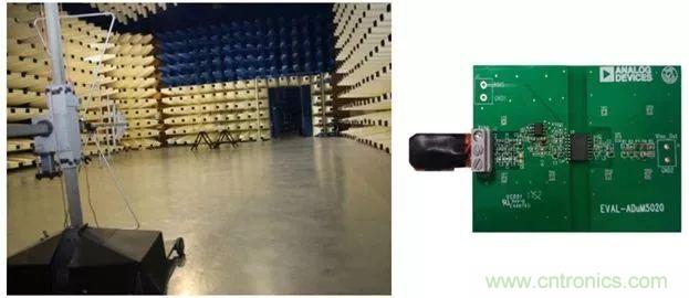 確保沒有任何外部設(shè)備、金屬平面或電纜會干擾DUT的輻射發(fā)射測試。為了測試ADuM5020/ADuM5028評估板,使用帶板載低壓差穩(wěn)壓器的電路來保持較小的電源電流環(huán),并消除不必要的布線。