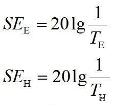 另外, 還可以用傳輸系數(shù)(或透射系數(shù))TE表示屏蔽效果, TE是指存在屏蔽體時某處的電場強度ES與不存在屏蔽體時同一處的電場強度E0之比; 或者是指存在屏蔽體時某處的磁場強度HS與不存在屏蔽體時同一處的磁場強度H0之比, 即: