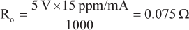 大部分基準電壓源不指定輸出阻抗,但會指定負載調(diào)整率,通常以ppm/mA表示。將其乘以基準電壓并除以1000即可轉(zhuǎn)換為輸出阻抗。例如,"ADR435 超低噪聲XFET® 5-V 5 V基準電壓源指定流出電流時的最大負載調(diào)整率為15 ppm/mA。轉(zhuǎn)換為電阻,可得: