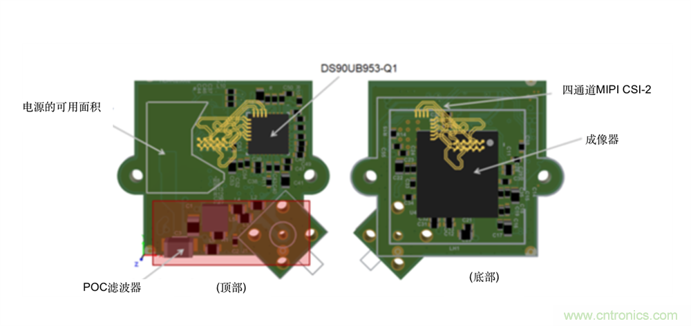 圖2:帶成像器的DS90UB953-Q1示例布局