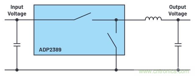 圖1.采用ADP2389的典型降壓型開關(guān)穩(wěn)壓器,最高輸出電流為12 A