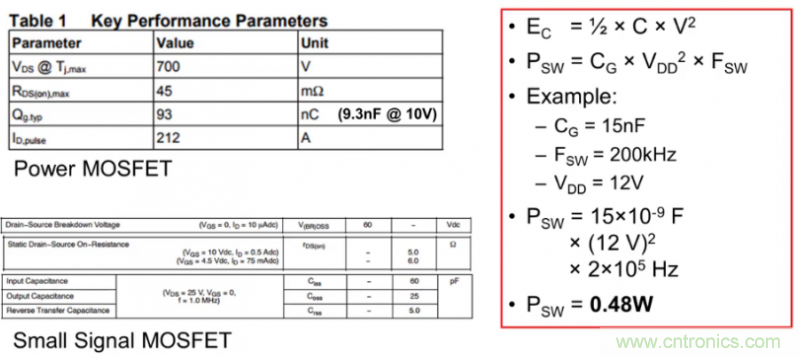在決定晶體管的驅(qū)動要求的元素中,還有一種更為棘手的損耗源。在柵極電容充放電過程中,開關(guān)會在全開和全關(guān)狀態(tài)之間存在一個過渡期,此時開關(guān)上會出現(xiàn)電壓,且會有電流流過開關(guān)。由于同時存在較高的電壓和較高的電流,因此這類開關(guān)損耗會造成相當大的功耗,有時會達到幾十瓦,以及進一步的效率降級。因此,通過更快地對柵極電容進行充放電來縮短過渡期的持續(xù)時間是有好處的。