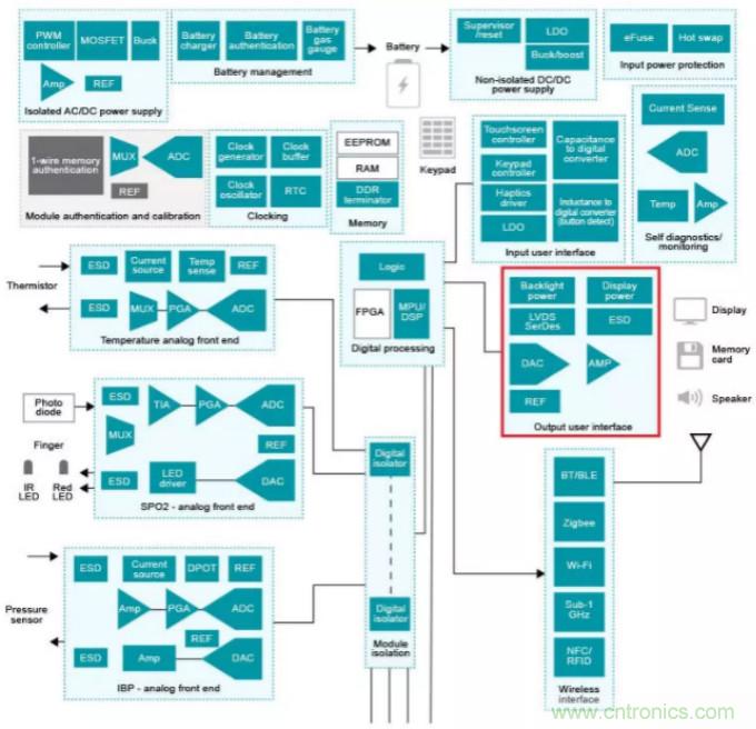 圖1:多參數(shù)患者監(jiān)護(hù)儀的簡要方框圖