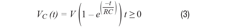 根據(jù)基爾霍夫定律,電容兩端的充電電壓VC (t)可表示為: