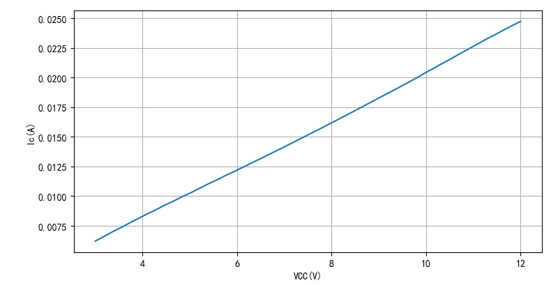 下圖給出了實(shí)際測量到的工作電壓VCC,與Ic之間的關(guān)系: