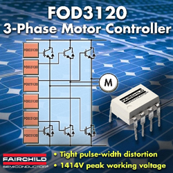 飛兆半導(dǎo)體公司(Fairchild Semiconductor)近日推出兩款柵極驅(qū)動光電耦合器FOD3120 和 FOD3150,為光伏逆變器、電機(jī)驅(qū)動和感應(yīng)加熱應(yīng)用帶來同級最佳共模抑制(common mode rejection, CMR)。這兩種產(chǎn)品的輸出電流分別為2.5A和1A,具有業(yè)界最高的CMR值,即使在最嘈雜的工業(yè)環(huán)境中,也能夠輕易驅(qū)動1200V/20A IGBT和MOSFET,而這種抗噪聲性能有助于防止可能導(dǎo)致?lián)舸╇娏骱?IGBT 損壞的誤動作。此外,這些器件還具有嚴(yán)格的脈寬失真 (100ns),可使用更小的濾波器。由于更小的濾波器消耗的電能較少,因此能夠改善功效,提高系統(tǒng)效率。這些柵極驅(qū)動光耦合器的峰值工作電壓高達(dá) 1414V,能夠配合高壓IGBT。