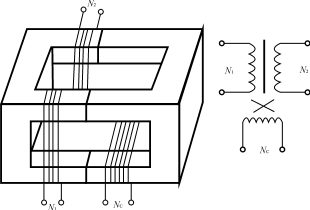 (a)一個C形鐵心轉(zhuǎn)90°可控電感(b)(a)的演變,可控電感