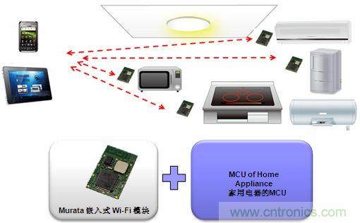 只需加村田的嵌入式Wi-Fi模塊,就可以用手中的手機(jī)或者Pad隨時(shí)隨地控制家中的電器。