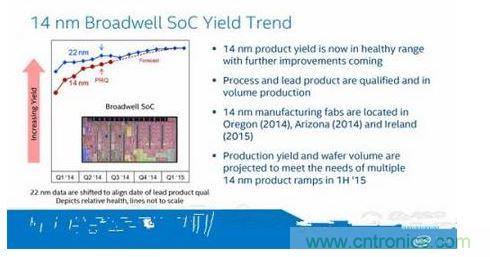 事實上,14nm也是迄今為止Intel面臨的最艱難的挑戰(zhàn),Intel對此也是很坦誠,并沒有遮遮掩掩。根據(jù)官方數(shù)據(jù),14nm工藝良品率初期低得要命,直到今年第二季度末才達到量產(chǎn)標準,預(yù)計2015年第一季度才能追上22nm的水平,后者迄今仍是Intel良品率最高的工藝。