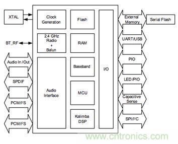 上圖為CSR8675消費(fèi)級(jí)音頻平臺(tái)