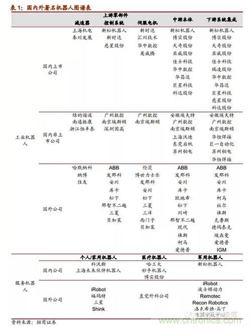 【導(dǎo)讀】隨著中國人口紅利消失,機器人不僅在制造業(yè)上正在替代工人,還將在軍事、服務(wù)、娛樂等領(lǐng)域取代人類,“鋼鐵俠”已不僅僅存在于美國科幻電影中,而正走入我們的生活。本篇報告對機器人行業(yè)及龍頭上市公司進行分析,對比日本、美國、德國機器人行業(yè)技術(shù)路線、發(fā)展路徑、下游市場分布,對國內(nèi)機器人行業(yè)發(fā)展方向和空間進行預(yù)測,挖掘中國股市的tenbager。一起跟隨我愛方案網(wǎng)小編瞧瞧吧(做好準(zhǔn)備,很長的喔)
