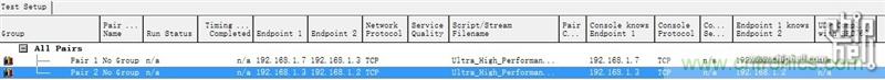 測(cè)試軟件依然是IxChariot,從聚合的設(shè)備(IP為192.168.1.3)同時(shí)向另外兩臺(tái)設(shè)備(IP分別為192.168.1.2,192.168.1.7)發(fā)送數(shù)據(jù)進(jìn)行測(cè)試,測(cè)試設(shè)置如下,分別測(cè)試2 Pair (兩臺(tái)被連接設(shè)備各1 Pair,10 Pair和50 Pair同理),10 Pair及50 Pair的網(wǎng)絡(luò)吞吐。