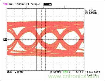 圖5b. 經(jīng)過100英尺電纜傳輸后的眼圖,數(shù)據(jù)速率: