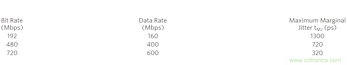 低于或等于表中列出的最大值,解串器能夠確保數(shù)據(jù)的恢復(fù)。