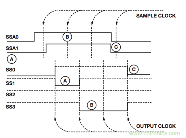 圖5. 從機選擇地址位SSAx選擇四個從機之一(即SSx)。