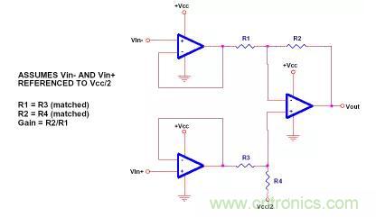 儀用放大器利用了同相輸入端高阻抗的優(yōu)勢。