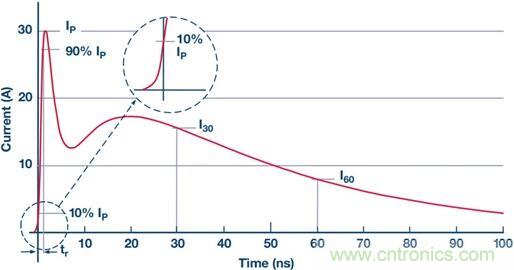 IEC波形:ESD、EFT和突波的曲線各有不同,它們會以不同的方式攻擊組件的某些弱點。