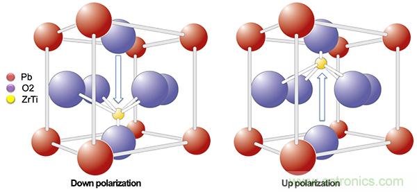 圖 1:F-RAM 技術(shù)利用了 PZT 材料在受到電場作用時(shí)表現(xiàn)出的兩個(gè)同樣穩(wěn)定的能態(tài)。(圖片:Cypress Semiconductor)