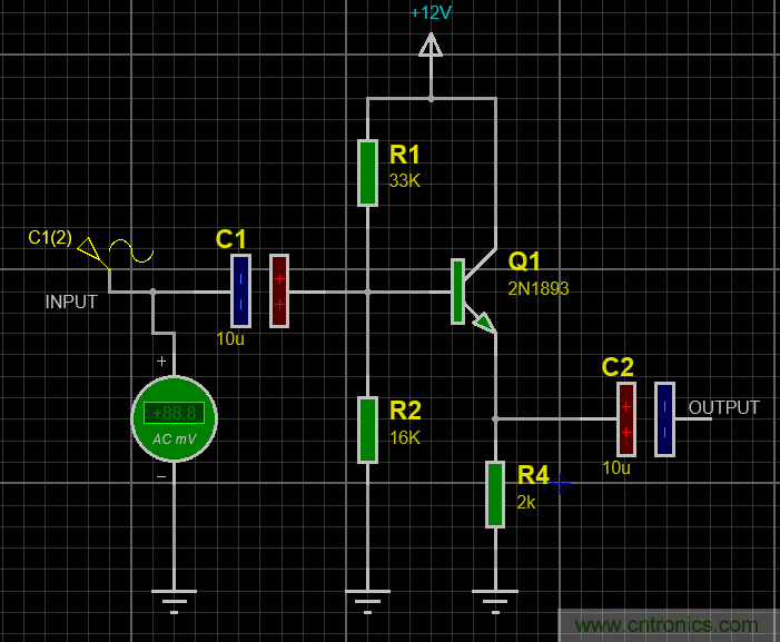 我們先來看看射極跟隨器的原理圖。