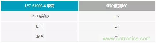 為實(shí)現(xiàn)高壓瞬變保護(hù),例如IEC 61000-4-2 ESD、IEC 61000-4-4電快速瞬變脈沖群(EFT)和IEC 61000-4-5浪涌,應(yīng)使用分立電阻和瞬變電壓抑制(TVS)器件實(shí)施類似圖2所示的電路。將電阻放在系統(tǒng)的反饋環(huán)路內(nèi),使電阻不會(huì)給系統(tǒng)輸出增加任何誤差。