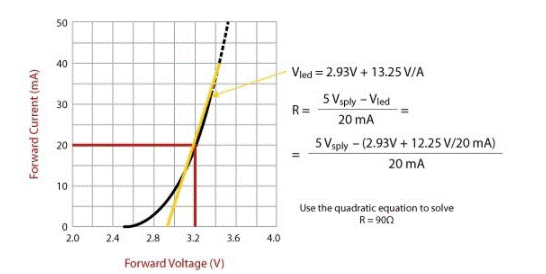 給定LED的規(guī)格表和所需的LED電流,找到一個電阻值