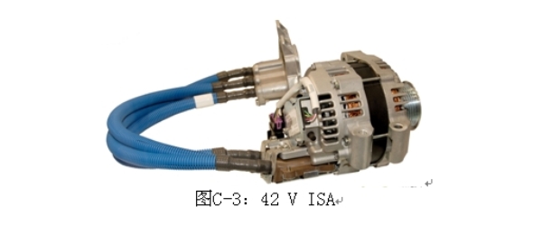 用于中型混合動力系統(tǒng)的ISG(集成式起動機/發(fā)電機),輕型汽車為14 V,120 A,而在制動和停車期間沒有燃料噴射時,空轉引擎為42 V,60至80 A輸出。