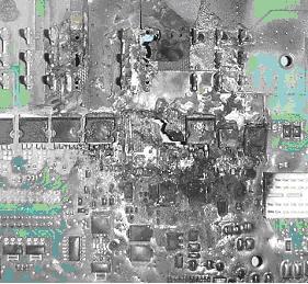 當(dāng)一次短路輸出最終燒毀了她的BCM時,車廂內(nèi)充滿了刺鼻的燒焦味,如圖6電路板所示,該車的車主買了一輛新車,有同樣遭遇的車主不是很少。彌補一輛價值3000美元的汽車的置換損失需要很多個模塊。模塊的單價比較昂貴,底價不易被接受。從長遠看,多花一點錢增加這種保護裝置是物有所值的。