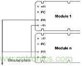 利用這個(gè)AC信號(hào)(每只模塊都有的雙向接口,用來(lái)輸出及接收模塊間的信號(hào))。進(jìn)一步改善系統(tǒng)的可靠性,設(shè)計(jì)師亦可以外加一些保護(hù)措施,即除了簡(jiǎn)單地把所有PR腳連上外,還可以把引腳電容耦合(圖2),避免DC耦合或單線并聯(lián)等架構(gòu)產(chǎn)生的潛在危機(jī)(因?yàn)閱蝹€(gè)模塊失效而影響整個(gè)數(shù)組,甚至損壞其他模塊)。如在每個(gè)模塊到總線間加上電容,也可避免上述問(wèn)題。