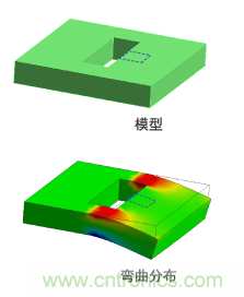 有無(wú)缺口時(shí),電路板彎曲有何不同呢?FEM解析結(jié)果如圖4、圖5所示。