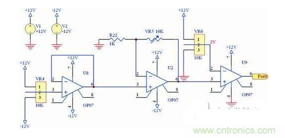 心跳變化時,傳感器所測量到的信號,包含有直流偏壓(DC Offset)、心跳變化的信號、呼吸及肌肉顫動、60Hz及高頻的噪聲,其中心跳變化的信號為所需的信號,其它信號一律視為噪聲,因此分別采用硬件的前置濾波電路及軟件兩種處理方式,以消除不同的噪聲對測量所造成的影響。前置濾波電路主要特點是可以減輕軟件程序進行數字信號處理所需的運算量及時間,避免造成信號處理過程中延遲情形。圖2為心跳感測電路。