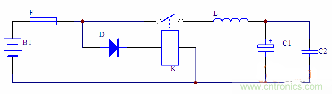 采用繼電器的防反接保護(hù)電路,基本電路如圖2: