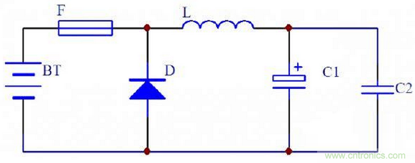 這種防反接保護(hù)電路結(jié)構(gòu)簡(jiǎn)單,不會(huì)影響效率,但保護(hù)后會(huì)燒毀保險(xiǎn)絲F,需要重新更換才能恢復(fù)正常工作。