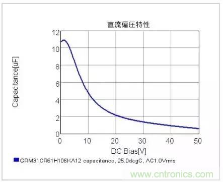 雖然10uF的陶瓷電容,標(biāo)稱的:10uF、耐壓50V,封裝體積小于等于1206,但是我們知道陶瓷電容的電壓依耐性,也就是說(shuō)電壓越高,其有效容值會(huì)下降。查看datasheet,觸目驚心: