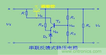 如把串聯穩(wěn)壓電路看作反饋放大器(輸入為VI,輸出為Vo),則這種電路屬于電壓串聯負反饋 。