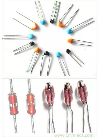 熱敏電阻按照溫度系數(shù)的不同分為: 正溫度系數(shù)熱敏電阻(簡稱PTC熱敏電阻)和負溫度系數(shù)熱敏電阻(簡稱NTC熱敏電阻)。