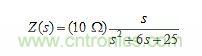 圖2:Z(s)=(10Ω)s/(s2+6s+25)的幅度圖。(通過在虛軸上計算|Z|獲得的分布曲線圖顯示出單端口電路的交流響應。)