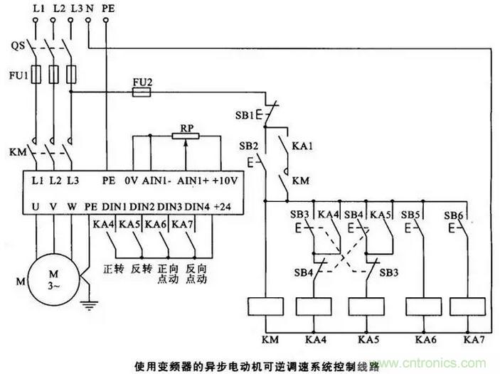25. 使用變頻器的異步電動機可逆調(diào)速系統(tǒng)控制線路