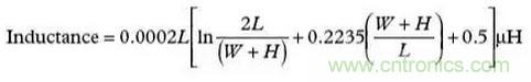 帶狀電感是另外一種需要考慮的寄生效應(yīng),它是由于印制線過長或缺乏接地平面引起的。式(2)示出了計(jì)算印制線電感(Inductance)的公式。參見圖6。