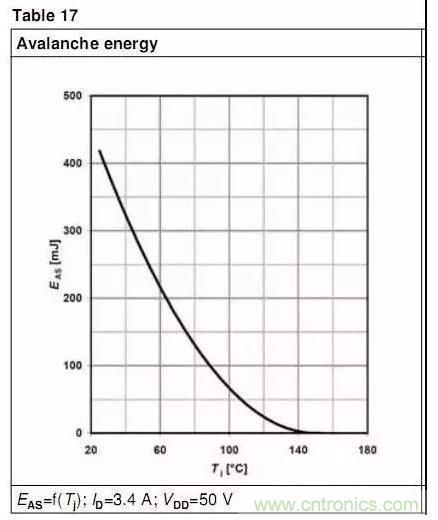 計(jì)算出來(lái)EAR后,對(duì)比datasheet上的EAR值,若在datasheet的范圍內(nèi),則可認(rèn)為是安全的(此處默認(rèn)重復(fù)雪崩電流<IAR),同時(shí)也得考慮結(jié)溫的影響