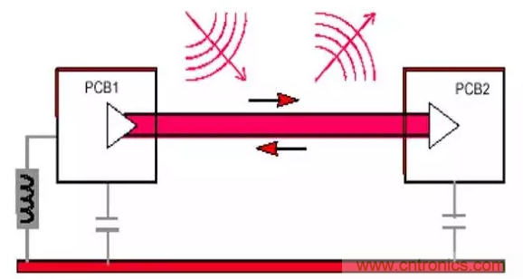 串模干擾(差模干擾)與共模干擾(接地干擾)。以主板上的兩條PCB走線(連接主板各元件的導(dǎo)線)為例,所謂串模干擾,指的是兩條走線之間的干擾;而共模干擾則是兩條走線和PCB地線之間的電位差引起的干擾。