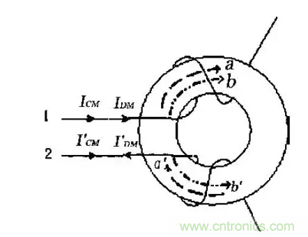 抑制共模干擾的主要方法是應(yīng)用共模扼流圈。共模扼流圈是共模插入損耗中起主導(dǎo)作用的電感元件。它是在一個(gè)磁環(huán)/閉合磁路的上下兩個(gè)半環(huán)上,分別繞制相同匝數(shù)但繞向相反的線圈。