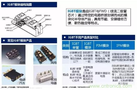 IGBT模塊是由IGBT與FWD(續(xù)流二極管芯片)通過特定的電路橋接封裝而成的模塊化半導體產品,具有節(jié)能、安裝維修方便、散熱穩(wěn)定等特點。