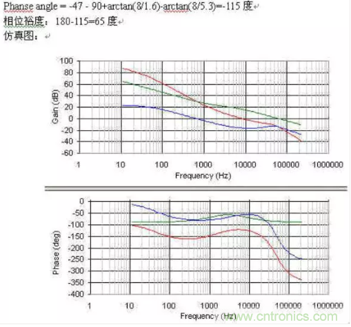 蘭色為功率部分,綠色為補(bǔ)償部分,紅色為整個(gè)開環(huán)增益.