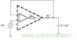 圖2顯示了一個(gè)具有阻性開環(huán)輸出阻抗的運(yùn)算放大器驅(qū)動(dòng)容性負(fù)載。