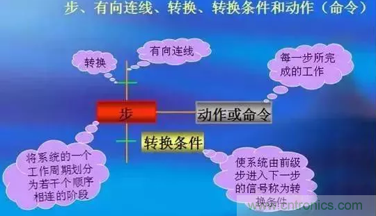 在控制系統(tǒng)的一個(gè)工作周期中,各依次順序相連的工作階段,稱(chēng)為步或工步,用矩形框和文字(或數(shù)字)表示。步有兩種狀態(tài):“活動(dòng)步、“非活動(dòng)步” 、“初始步”:一系列活動(dòng)步?jīng)Q定控制過(guò)程的狀態(tài)。對(duì)應(yīng)控制過(guò)程開(kāi)始階段的步,每一個(gè)功能表圖至少有一個(gè)初始步,初始步用雙線矩形框表示。