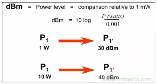 通常用 dBm 表示功率的單位,dBm 即是功率相對于 1mW 的值: